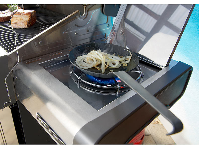 Smokey Hill stekpanna är idealisk för stekning under camping. Den är perfekt på öppen eld. Efter ett tag mörknar kastruller gjorda av plåt . Eftersom den har ett långt handtag är det lätt att häng upp den och förvara den i skyddspåsen som ingår i leveransen.